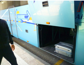 スーツケースなど大きな荷物は、 バスの下へ・・・ |