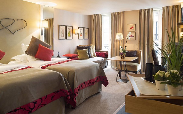 | 特徴 | サン・ジェルマン・デ・プレ地区にあるお洒落で隠れ家的な高級ブティックホテル。パリらしい素敵なホテルに泊まりたいとお考えの方に是非おすすめです! サンシュルピス寺院とリュクサンブール公園の間にあり、どこに行くにもとっても便利で、周辺の雰囲気はいかにもパリらしい。 パリのホテル人気ランキングでもいつも上位に選ばれる、憧れのプチホテルです。 館内はどこも清潔でスタッフの応対も大変好評。お部屋にはスリッパ、バスローブ、アメニティグッズが完備され、コーヒーセットの心遣いもありがたいですね。館内を彩る素敵なフラワーアレンジは、近くにブティックを構える有名なフローリスト「ヤニック氏」が手がけています。 多言語に対応可能な従業員がいつでも丁重にお迎えし、24 時間体制でクオリティの高いサービスを提供します。バー、書架、暖炉、パリの空を仰ぐ庭園などで、特別なパリの休日をお楽み下さい。 クリスマスシーズンは、敷地内で毎年恒例の可愛いマルシェ・ド・ノエルが開催されお客様をおもてなししています!! | |